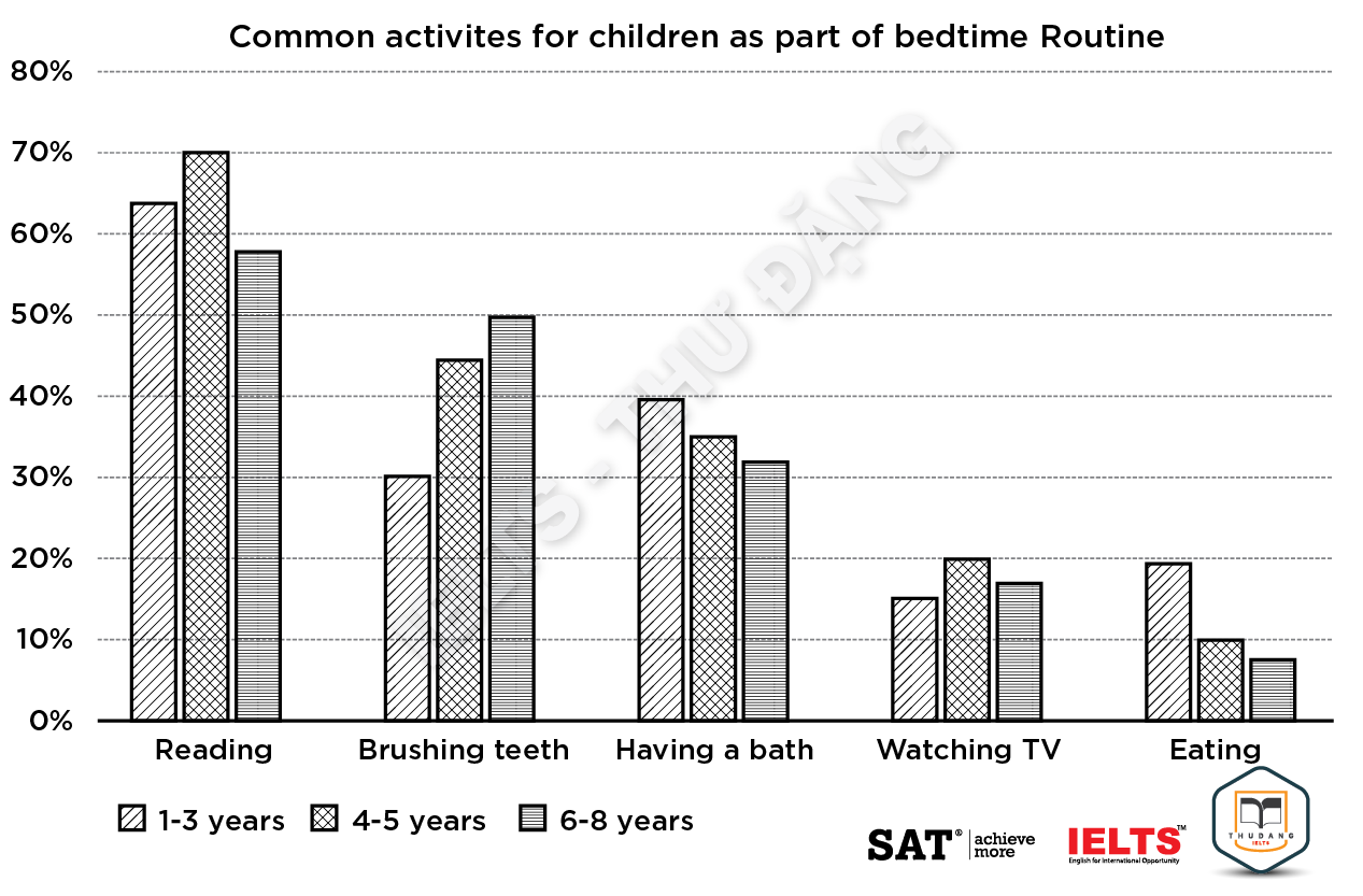 Task 1: The graph below gives information about the common activities children of different ages in the United States do as part of their bedtime routines. Summarize the information by selecting and reporting the main features and make comparisons where relevant.
