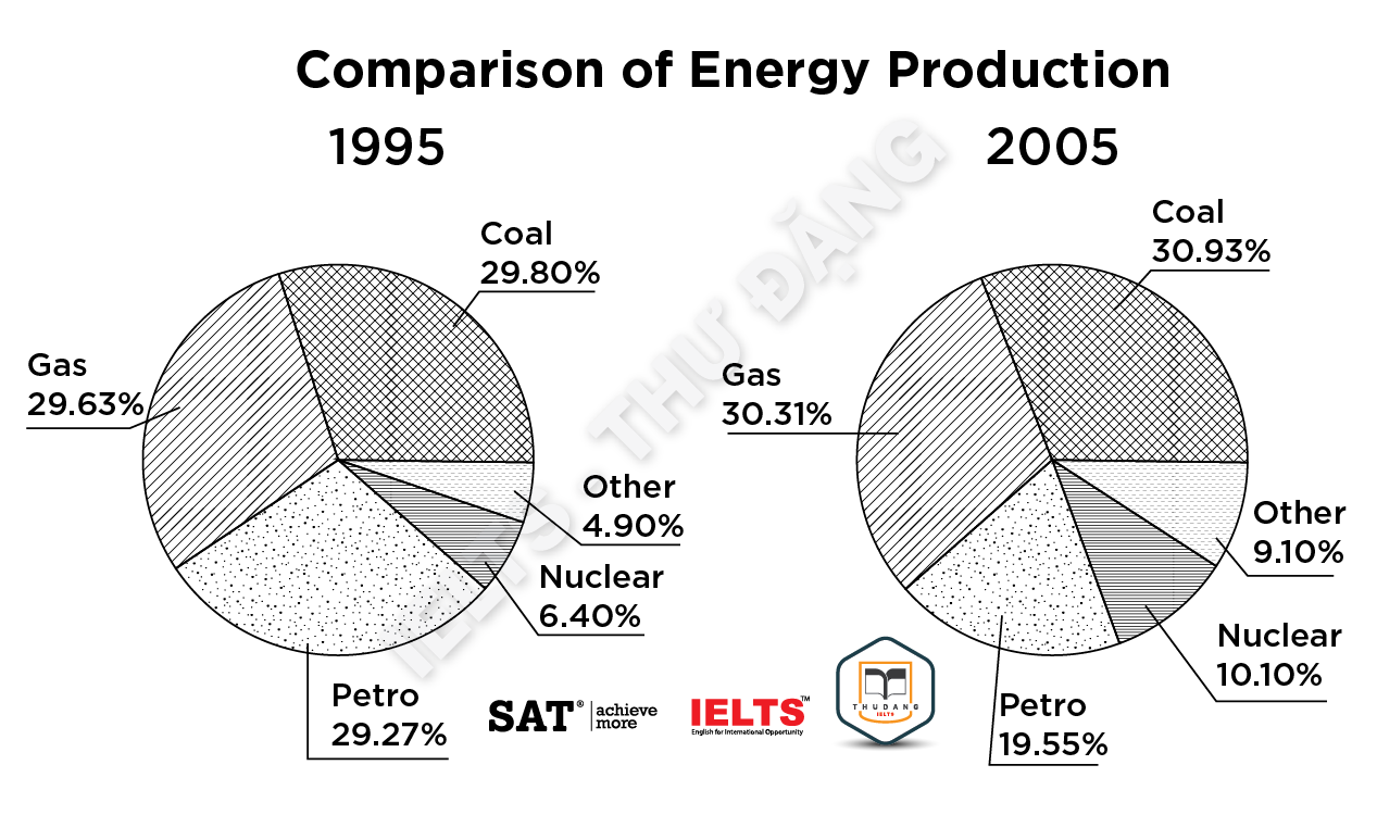 Task 1: The pie charts show the comparison of different kinds of energy consumption of the UK in two years. Summarize the information by selecting and reporting the main features and make comparisons where relevant.