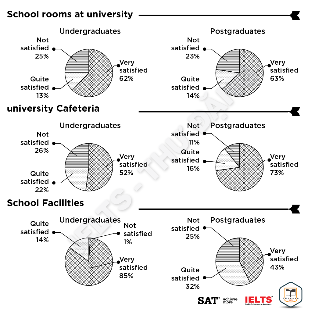 Task 1: The charts provide information about students in 2007 who were happy with different facilities at a university in the UK. Summarize the information by selecting and reporting the main features and make comparisons where relevant.