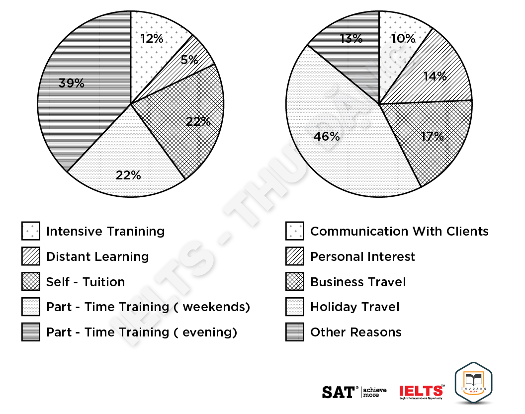 Task 1: The chart below shows the types of communication training taken by employees in an international company and the reasons why they took part in this training. Summarize the information by selecting and reporting the main features and make comparisons where relevant.