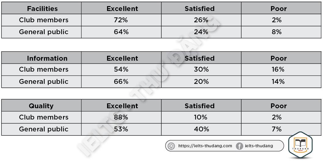 Task 1: The table below shows the questionnaire about opinions of club members and general public for the new theatre in one town in 2012. Summarize the information by selecting and reporting the main features and make comparisons where relevant.