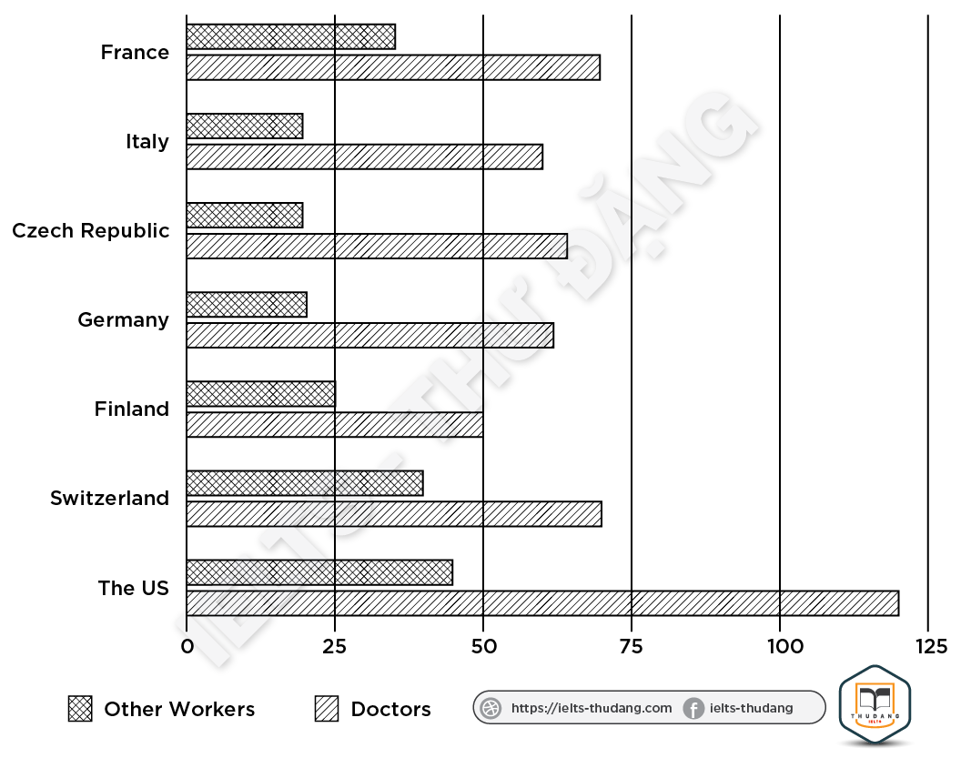 Task 1: The chart below shows the annual pay (thousands of US dollars) for doctors and other workers in seven countries in 2004. Summarize the information by selecting the key feature and make comparison where relevant.