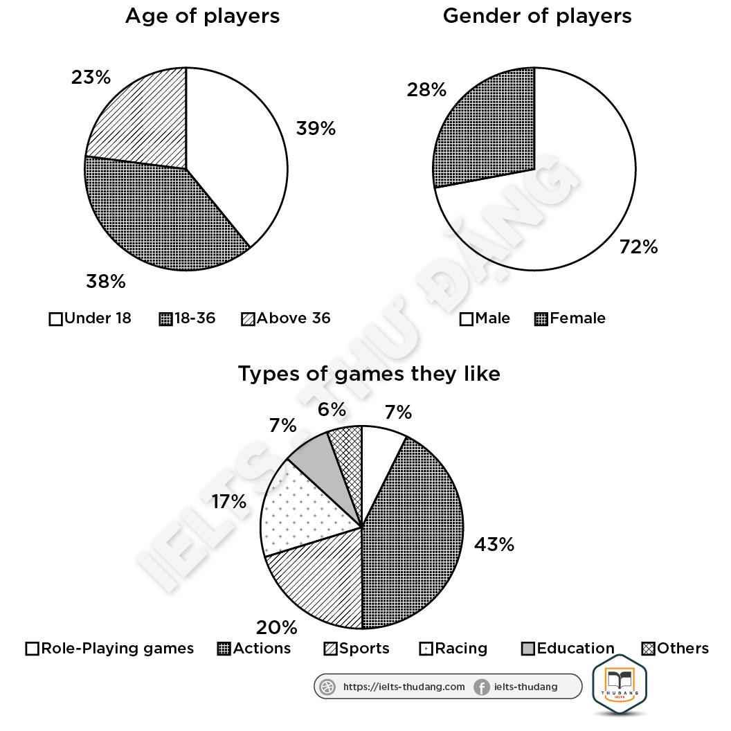 Task 1: The charts below give information about players of electronic games in South Korea in 2003. Summarize the information by selecting and reporting the main features and make comparisons where relevant.