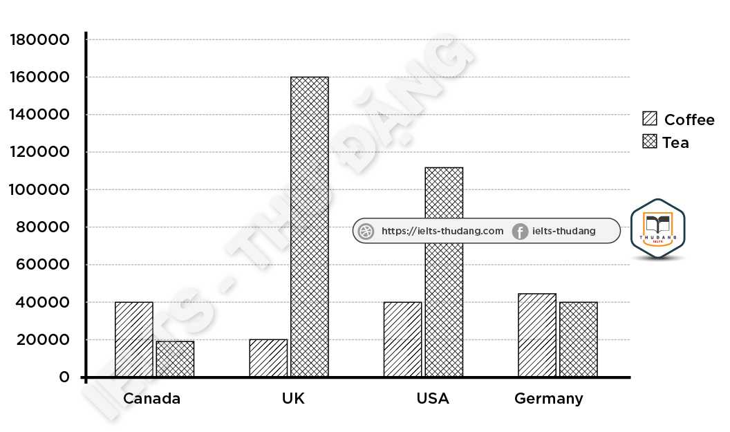 Task 1: The graph below shows the amount of tea and coffee imported by four different countries. Summarize the information by selecting and reporting the main features and make comparisons where relevant.