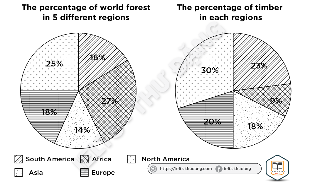 Task 1: The graph below shows the percentage of the world's forest and the percentage of the world's timber production in different regions of the world. Summarize the information by selecting and reporting the main features and make comparisons where relevant.
