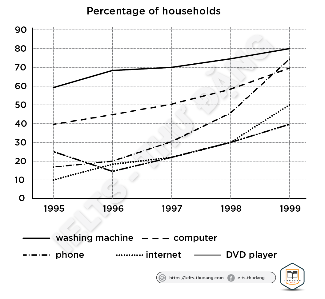 Task 1: The graph below shows the percentage of household with different kinds of technology in the USA from 1995 to 1999. Summarize the information by selecting and reporting the main features and make comparisons where relevant.