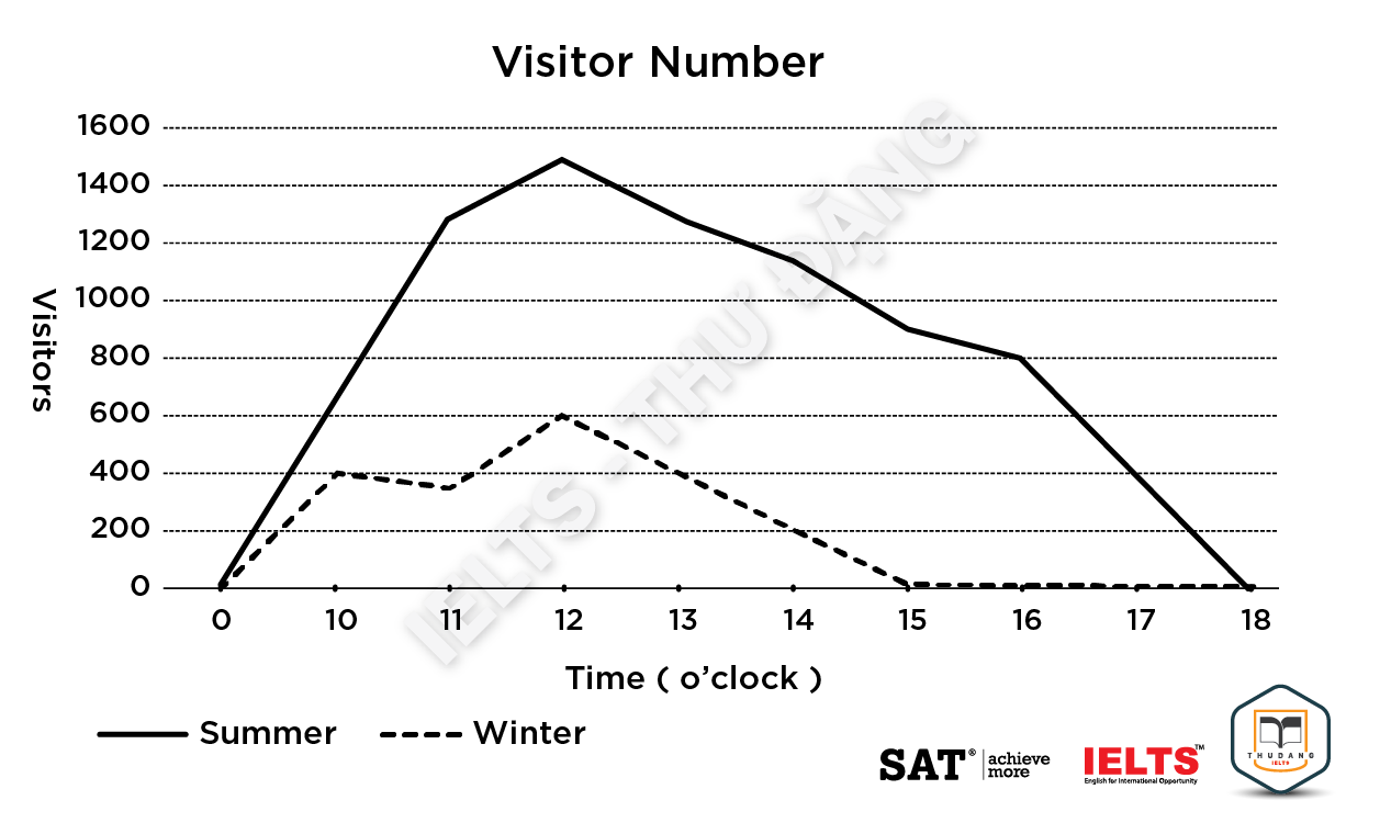 Task 1: The graph shows information about the average number of visitors entering a museum in summer and winter in 2005. Summarize the information by selecting and reporting the main features and make comparisons where relevant.