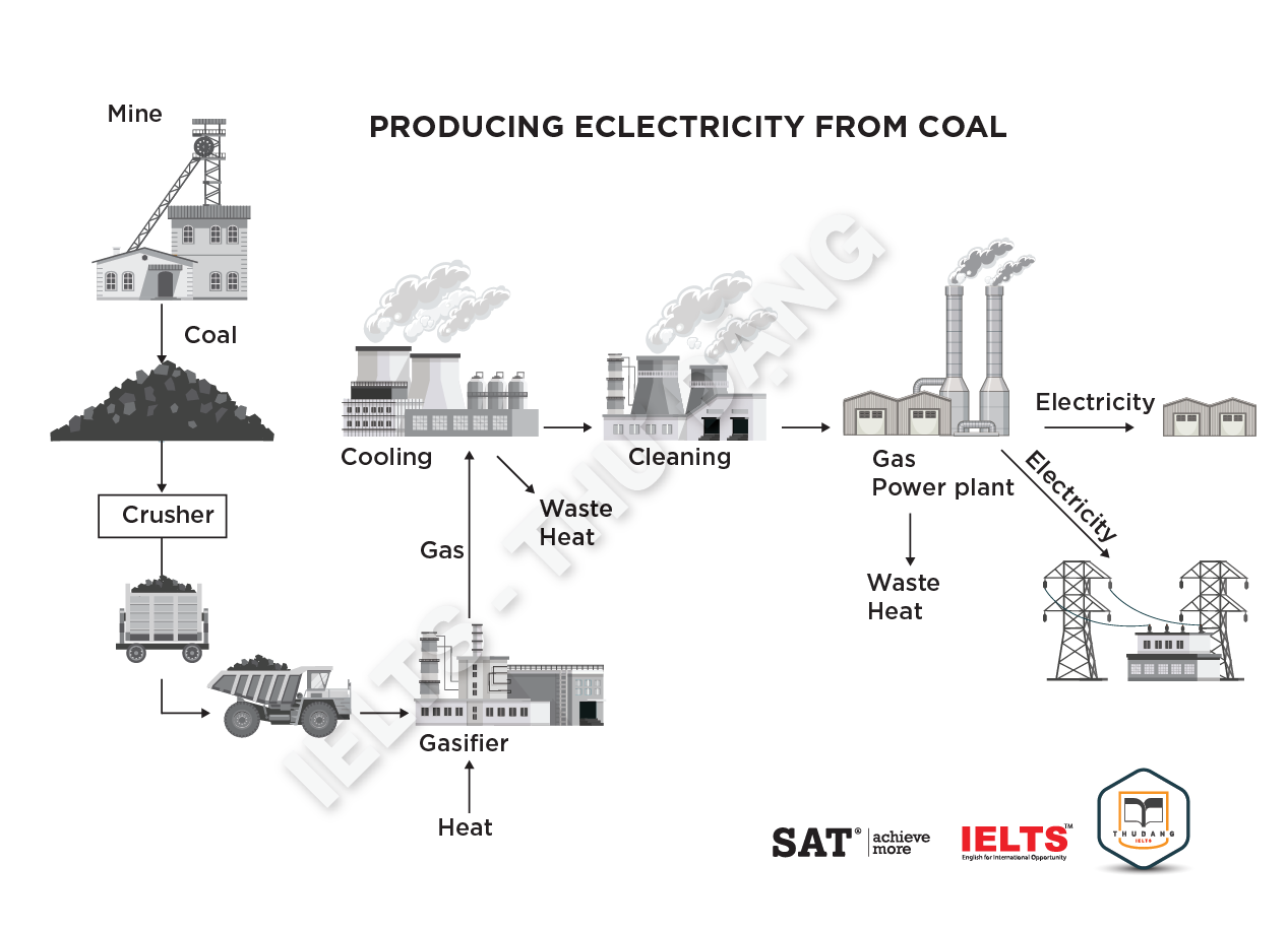 Task 1: The diagram below shows how one type of coal is used to produce electricity. Summarize the information by selecting and reporting the main features and make comparisons where relevant.